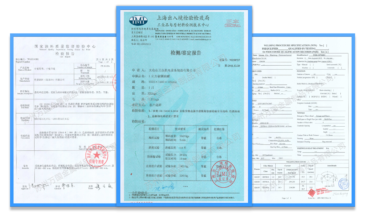 我們嚴(yán)格地運(yùn)行生產(chǎn)過程的質(zhì)量管控和成品檢驗(yàn),并擁有WPS焊接工藝評定、C4-H防腐認(rèn)證、罐體鑒定檢測報告等,確保給客戶提供高品質(zhì)、高性能的產(chǎn)品